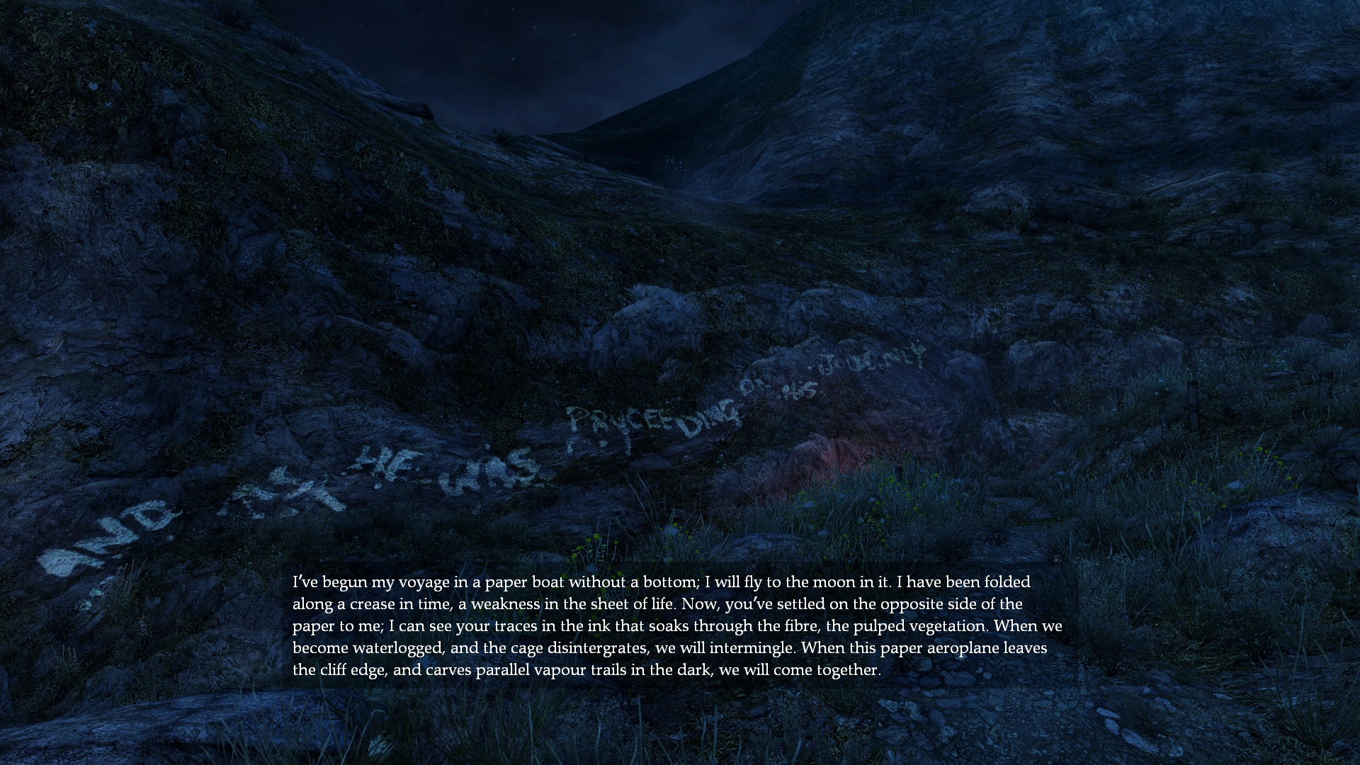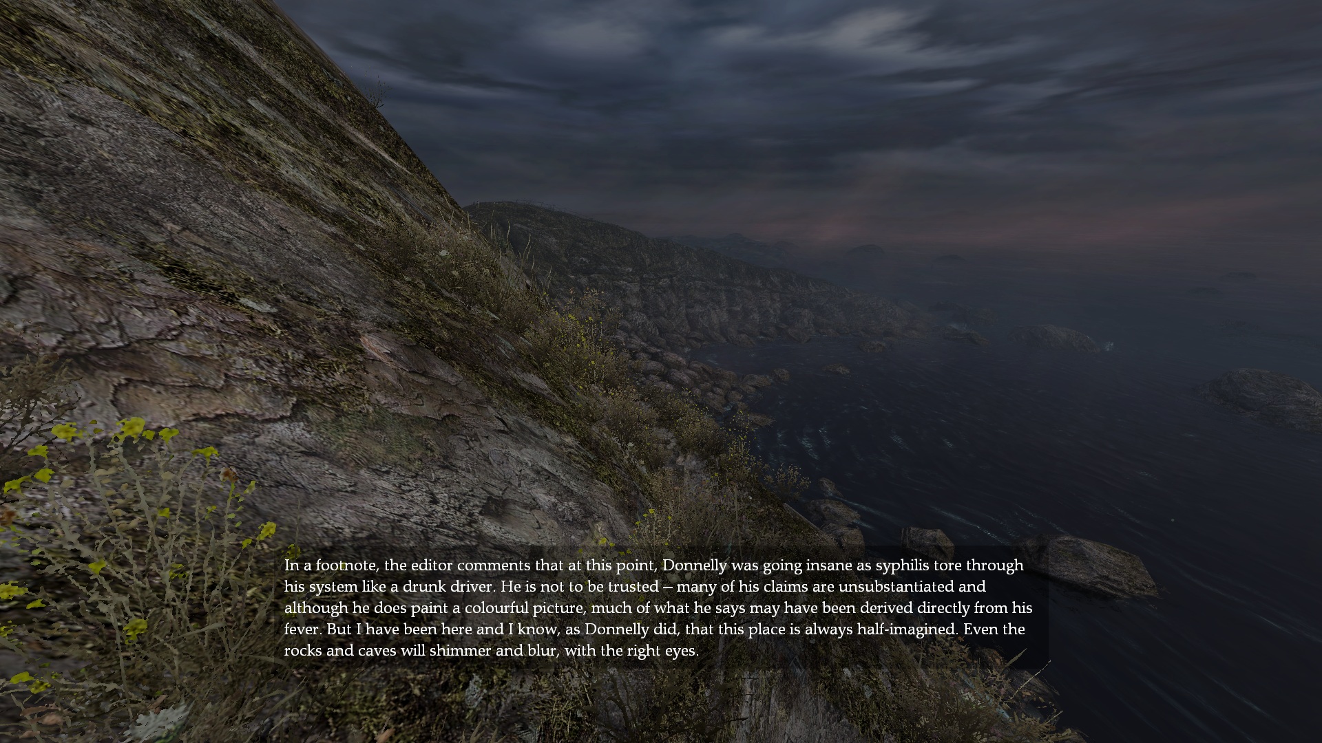 I first became aware of Dear Esther on the day it was released, as news passed that it recouped its Indie Fund investment in a mere six hours. Somehow, I entirely missed word of the game prior to that, but as I read more, I knew I had to play it. While it will take multiple playthroughs to obtain the game's full experience (due to semi-randomized dialogue), I came away a bit underwhelmed by the game. I normally eat up intentionally vague/confusing dialogue-based stories, but this story seems a bit more pedestrian than most (even if the vagueness fully makes sense within the story). But this in no way takes away from the game's other draw; its relentlessly gorgeous handcrafted visuals, with each frame packed in detail.