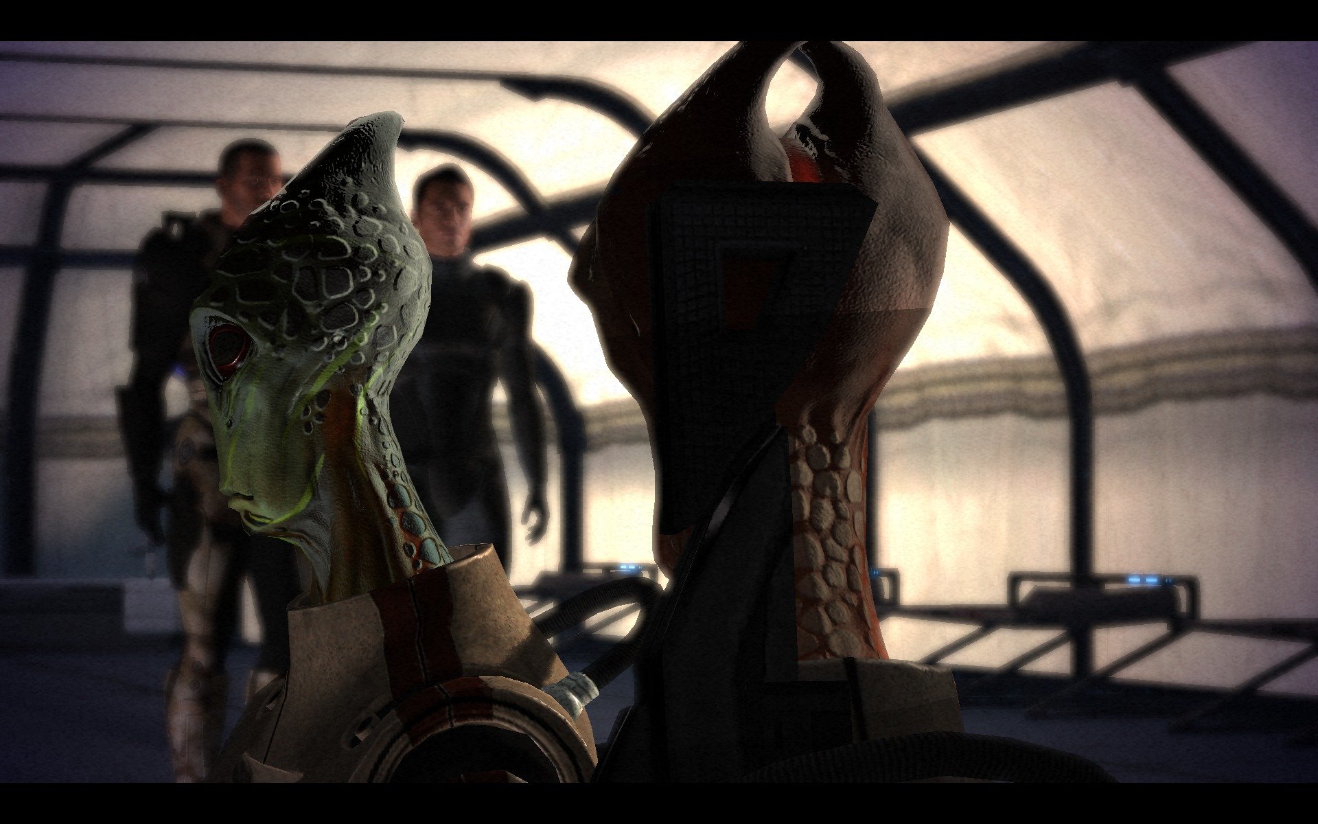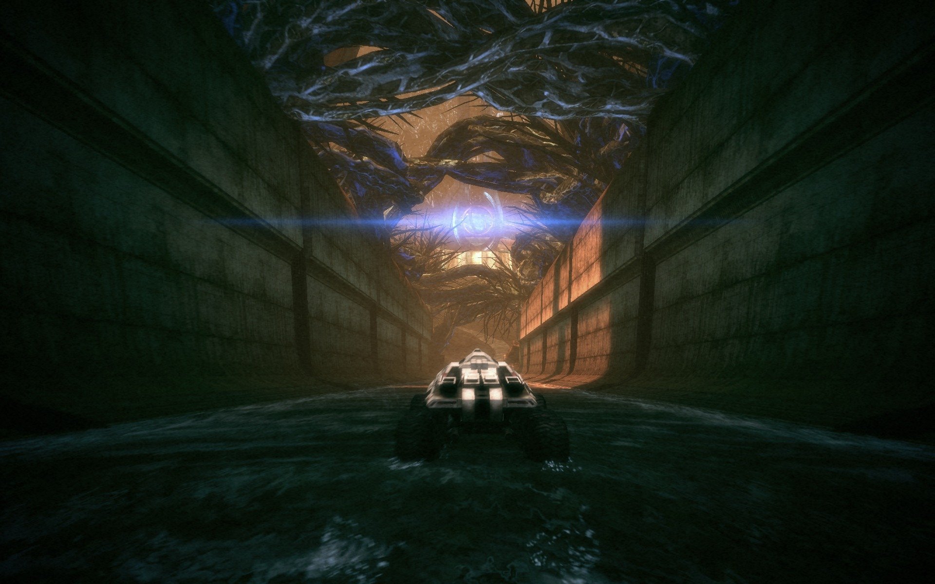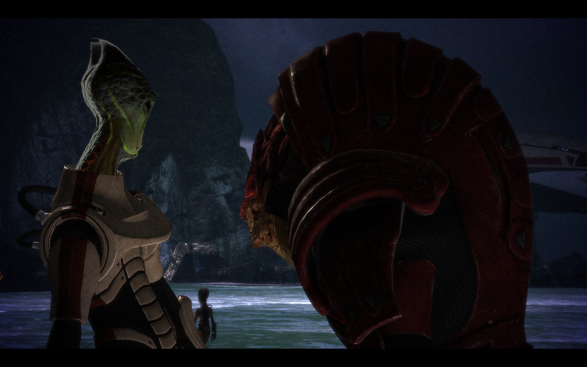 While playing Mass Effect, I noticed a relatively high amount of impressive scenery and images being captured, from which this idea was formed. As far as the specific idea for an audio-visual experience, I'll start by saying that people do things for any large number of reasons. To narrow down, common reasons for playing games may include the desire to distract oneself, desire for competition, desire for mental stimulation, and/or the desire to get lost in a new subjective experience. The goal of this article is to give you a subjective audio-visual experience without needing to travel through the entire game yourself. If you are new to the game, it will lead you through its entirety, accustoming yourself to the environments, style, and action. If you have already played the game, it will jog memories and rekindle an experience trapped down in long-term memory. Great care has been taken to withhold any apparent spoilers for those who have not experienced the game while still keeping the experience intact.