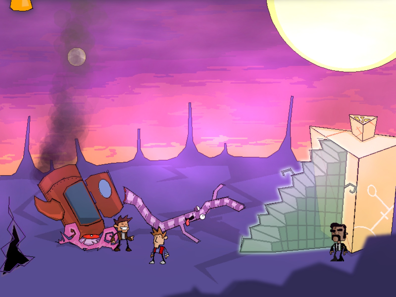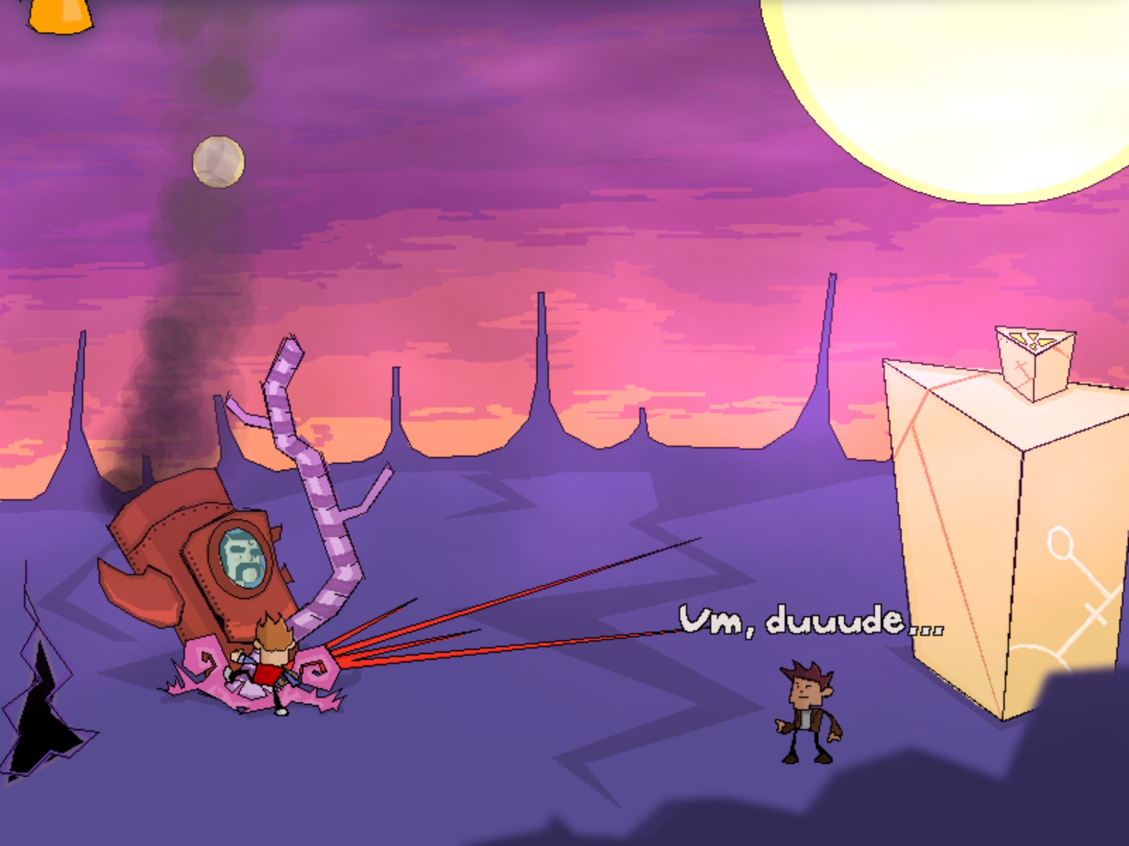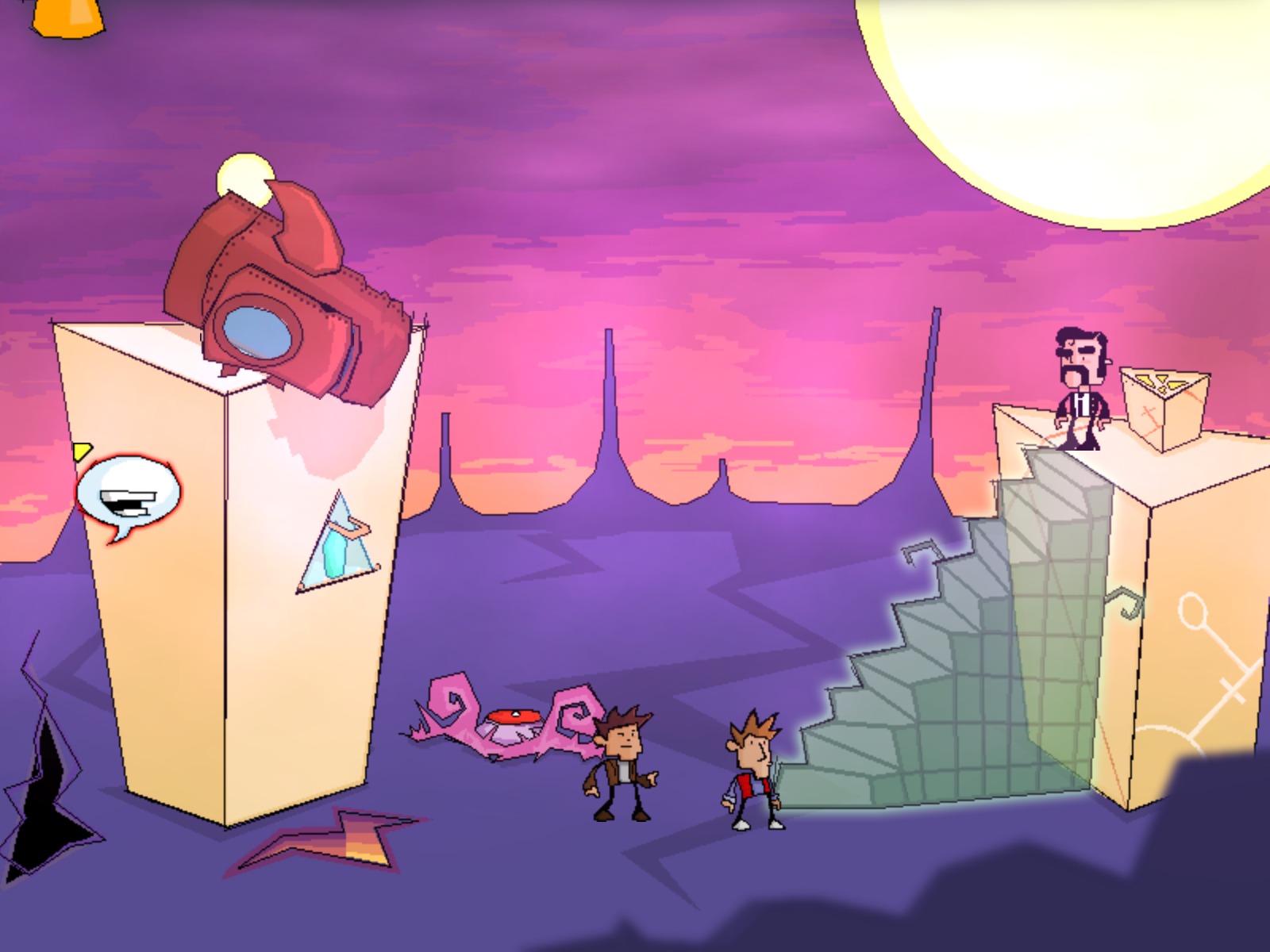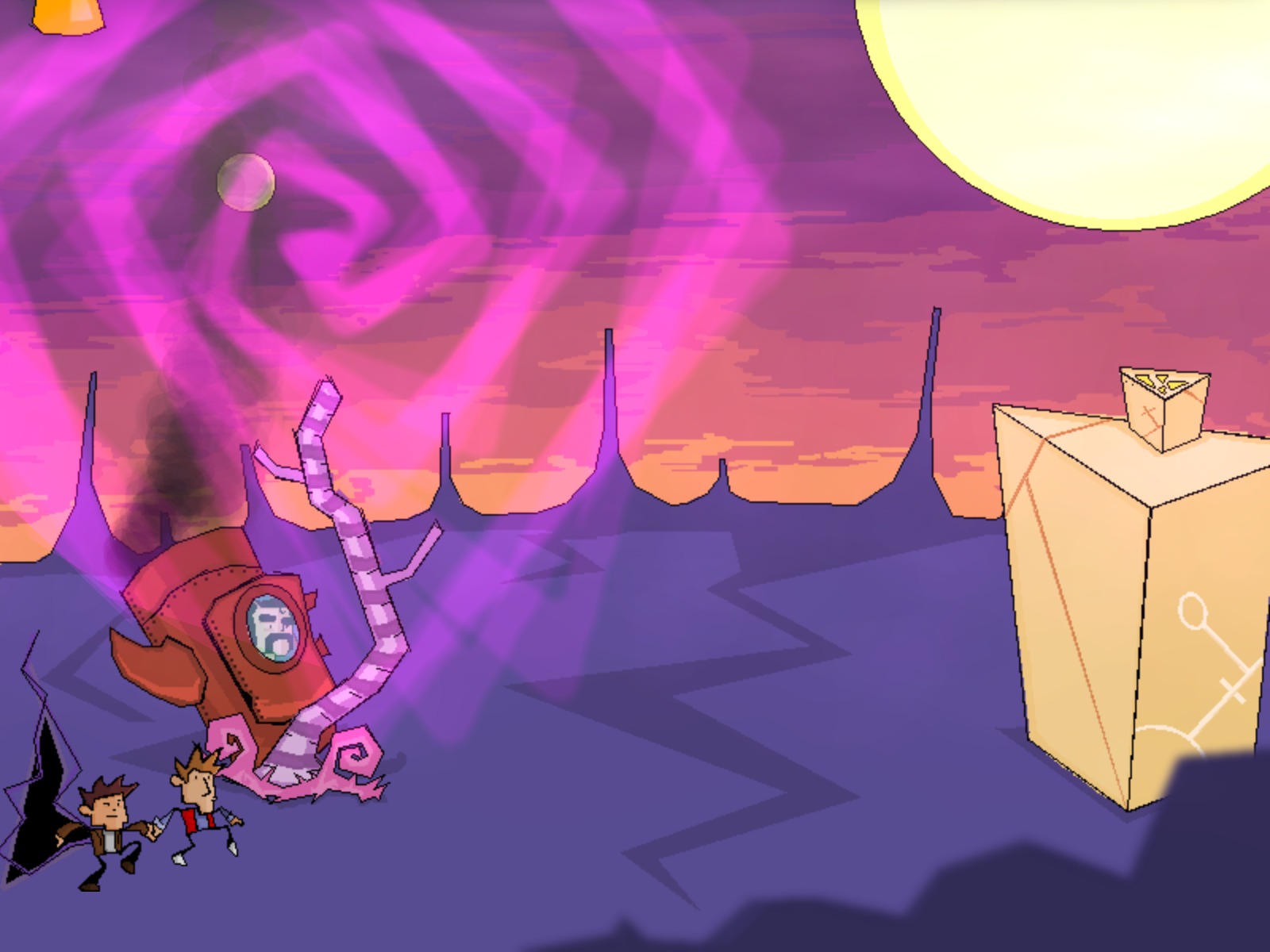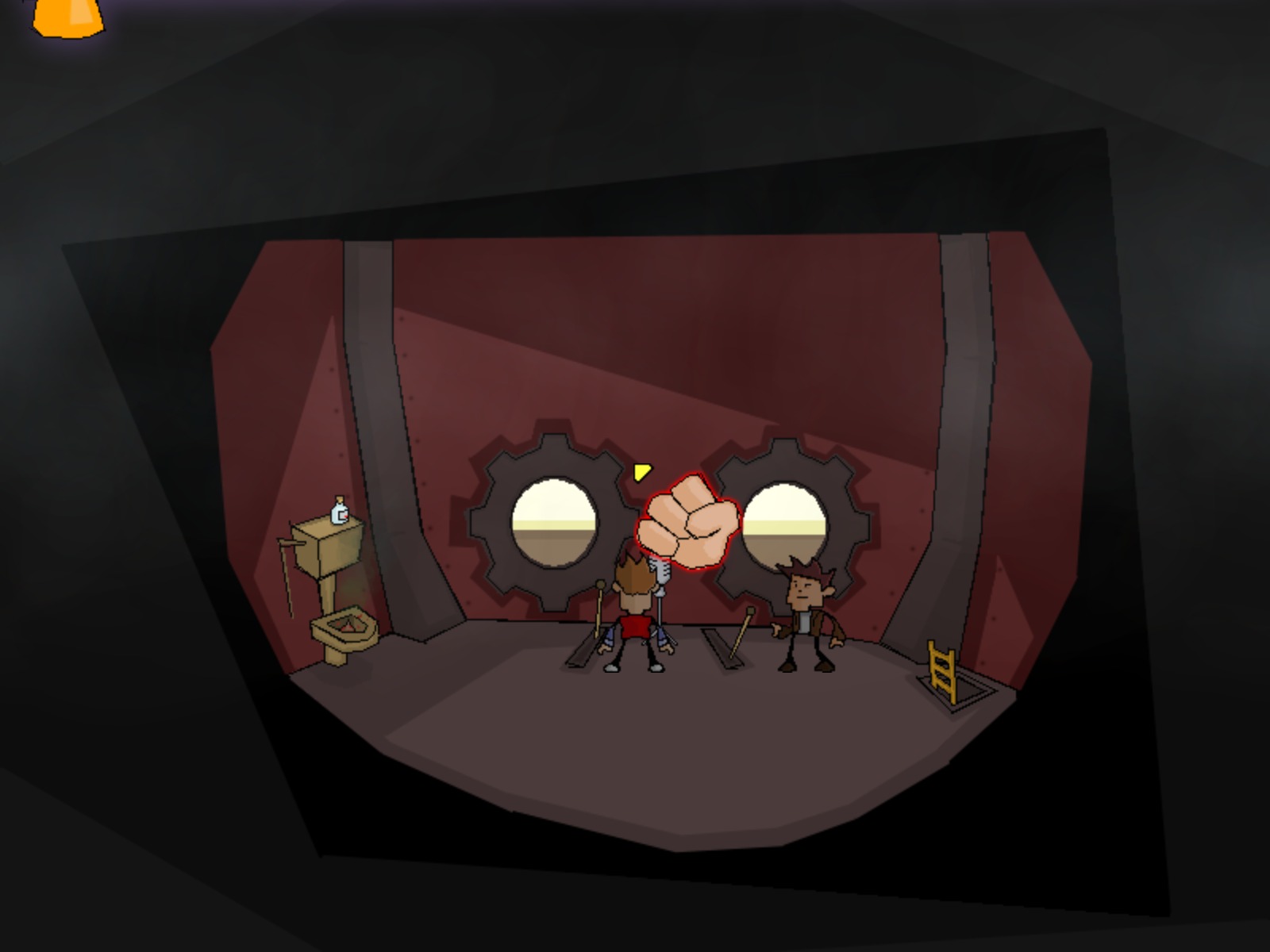 This spoiler-filled Audio Visual Experience of Time Gentlemen, Please! contains both potential puzzle/adventuring hints as well as possibly direct spoilers, up to and including the ending of the game. If you are interested in playing the game and have yet to do so (check the less spoilertastic article on the game), then you may wish to avoid this article. Otherwise, enjoy the experience of this fun little indie adventure game. Also as a sidenote, due to a bug with the game engine, no dialogue was captured on the images until the last few images, when some setting changes fixed the issue (as a result, somewhat reducing spoilering but also reducing fun). Warning: potential spoilers below.