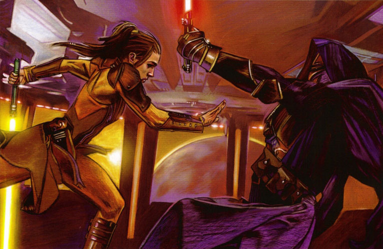 It wouldn't be a great Star Wars story without a great villain, and in Knights, that bad guy is Malak, Dark Lord of the Sith. His tale is so intertwined with the story that it's surprising how little screen time he actually gets. Plus there's a truly iconic scene where you see him with his mask off, I gasped! And unlike all the wannabe Sith apprentices running around, he uses a simple single bladed lightsaber. Classic.