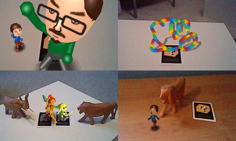 AR Shot: A sort of billiards-style game where you shoot a ball across hilly terrain that warps out of whatever surface you put the AR cards on.