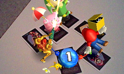Star Pics: Use the included AR Cards of Nintendo characters to put them in poses in the real world (pic below).