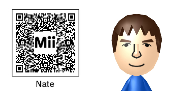 Another interesting feature is that you can create a sort of Mii barcode, known as a "QR Code." If you scan this code with your 3DS' camera, it will create the corresponding Mii. For example, mine is below. If you go into your Mii Maker and scan that QR Code, my Mii will be added to your collection! Pretty nifty, huh? You can also save a picture of your Mii's face or full body to the SD card. That's how I got the Mii picture below.