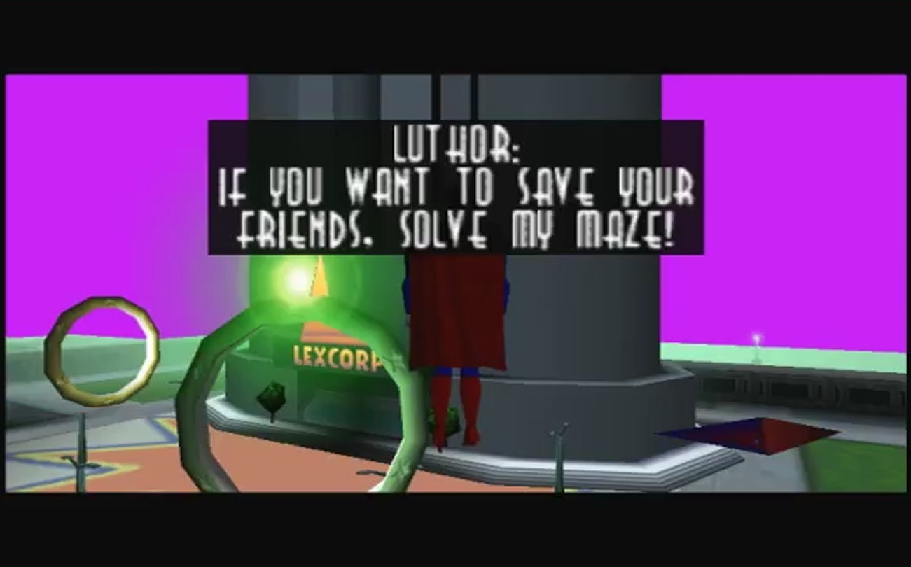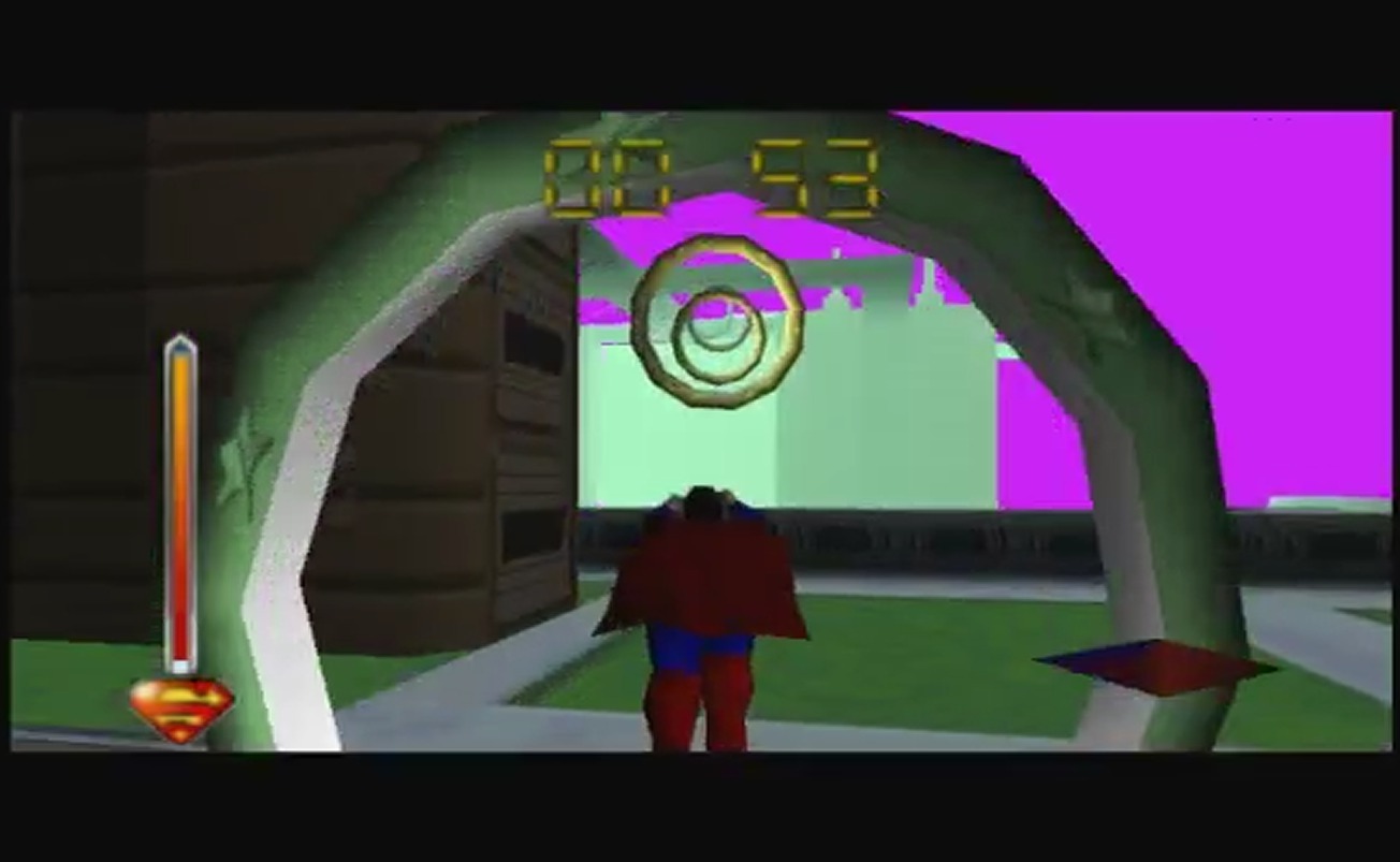 When I first boot up Superman 64, I’m greeted with a Super Mario-esque 3D splash screen of Superman’s chest and logo. After this point I’m reminded to insert a Controller Pak if I want to save. Wait, a Controller Pak? Well, there has to be something substantial here if there’s no room to save my game on the cart.
