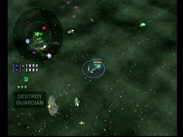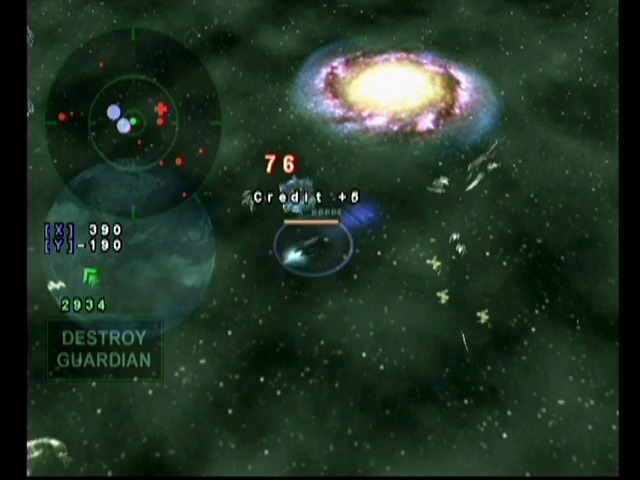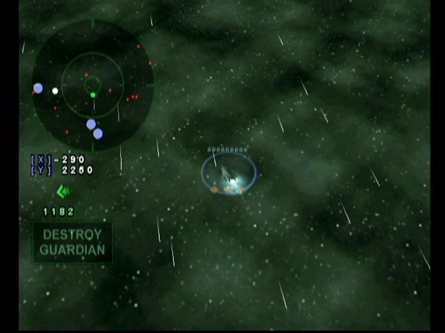 06 – Press up to blast off into space? Sure why not. Hmm... Y to activate shield. L trigger to warp (high speed movement, drains shot power), R trigger to move forward, which I already knew. Analog stick faces me in directions.