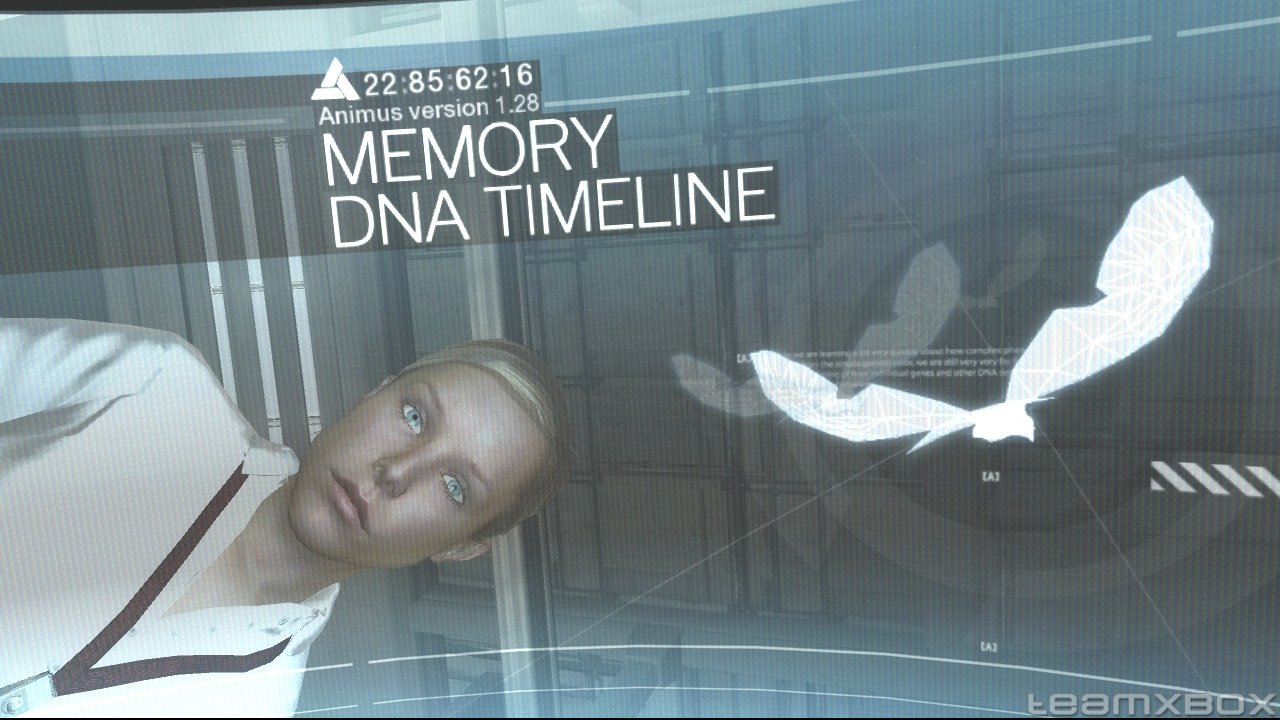 05 - I'm able to look back and forth as they talk more about memories and genetics. Sounds like the Animus bed allows them to access my ancestor's memories. They're looking in particular for a certain memory, one far along Desmond's chain of memories (each memory is probably a level of some sort).