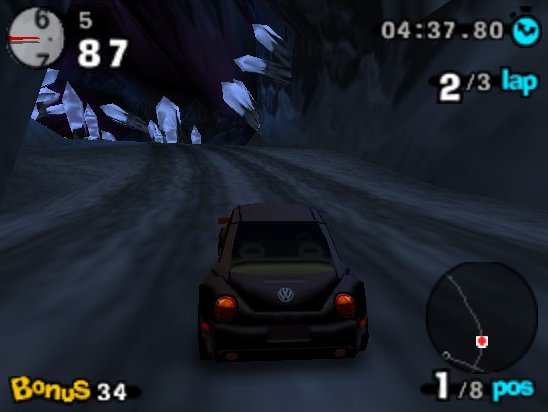 What was awesome: While the Volkswagen Beetle may be a lovable car, it's the stages that really shine in Beetle Adventure Racing. They're lengthy, chock full of character, and offer up plenty of variety and shortcuts. Take a ride through the three levels I played and it's amazing how you can go from locale to locale just within one race! While the Nintendo 64 had a wide variety of racers, there was really nothing like this one. Mario Kart 64 had some great tracks, but they were all single themed and relatively short. Color me mightily impressed, it's just too bad I only got to play three.