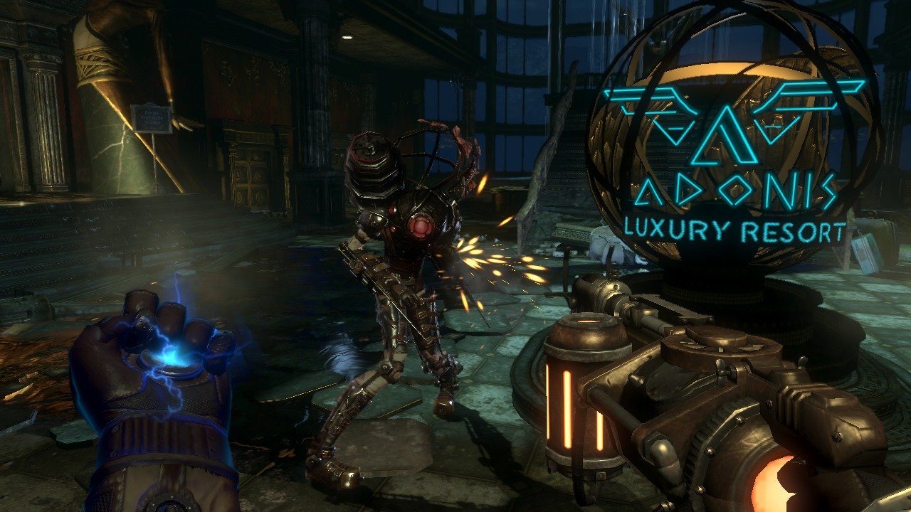 10 - I find a bottle of plasmid and inject myself (having flashbacks of BioShock 1 here!). Looks like it's an electrobolt power, woah, a Little Sister! She tells me about that Eleanor (my "daughter") missed me a lot. I need to find her. All of a sudden the Big Sister runs by and snatches the girl in front of me. Oh no you didn't!