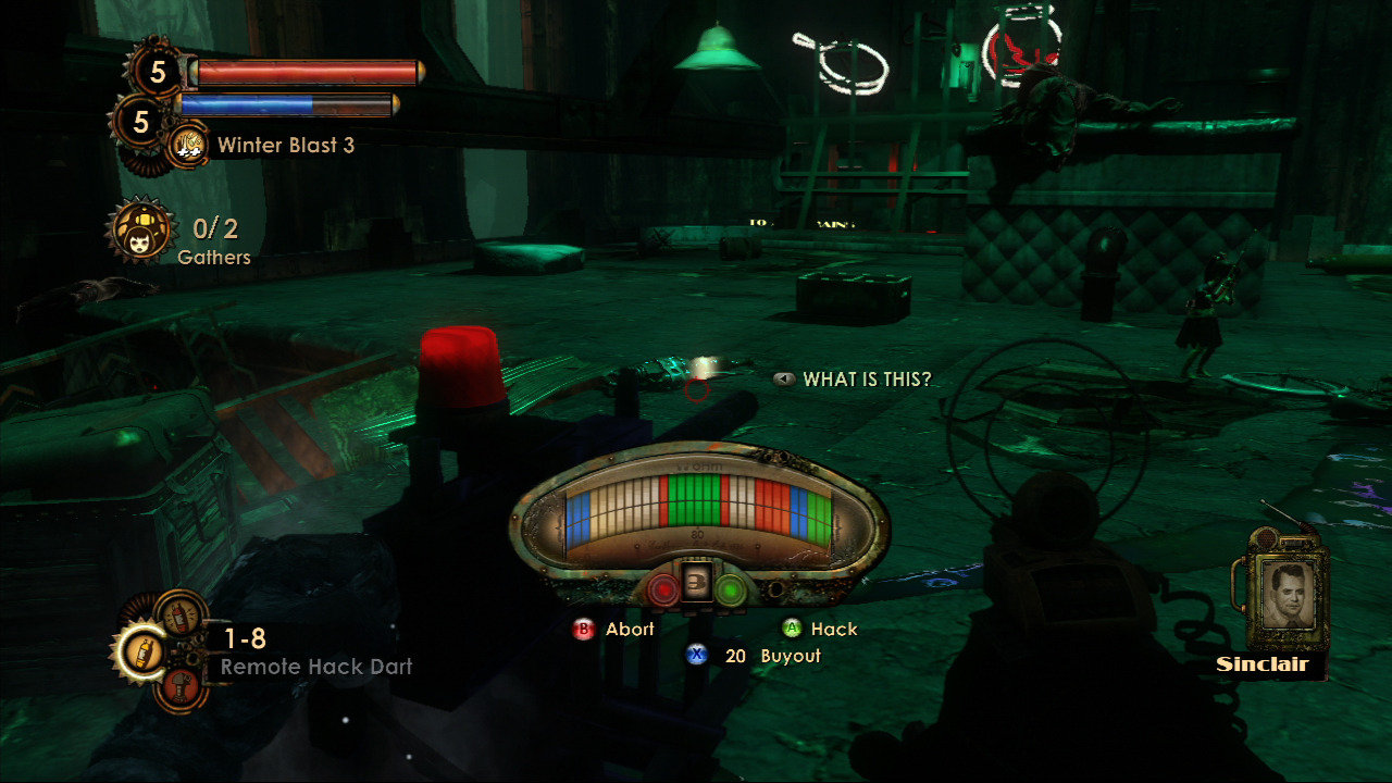 57 - Tenenbaum bids goodbye for now and Sinclair, an ally of hers comes on the line. He's impressed that I'm a free minded Big Daddy and tells me to come to Ryan Amusements.