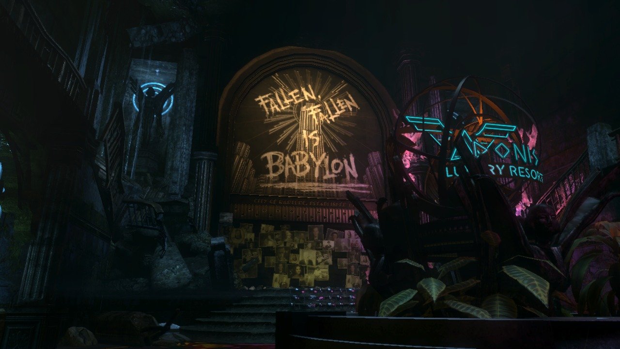 05 - "Fallen, fallen is Babylon" is painted on the wall in front of me. For being a Big Daddy, I move surprisingly well! Great job on that one. I bust through some coral with my drill and move on.