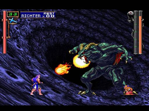 Okay, I was kind of bored during the scrolling text after the first Dracula battle, so I probably missed some of the important tidbits... So maybe an eight is higher than the first hour deserves, but there were still some interesting aspects. Playing as a completely different character in the opening and just being thrown into the action is usually always fun. Especially with invincibility and the obligatory impossible-to-lose battle. I'm familiar with Richter (ironically from the newer games) so it's good to see him. Alucard is one of the more unique vampire-killers, even if he does look a little feminine (and moonwalks like a pro).