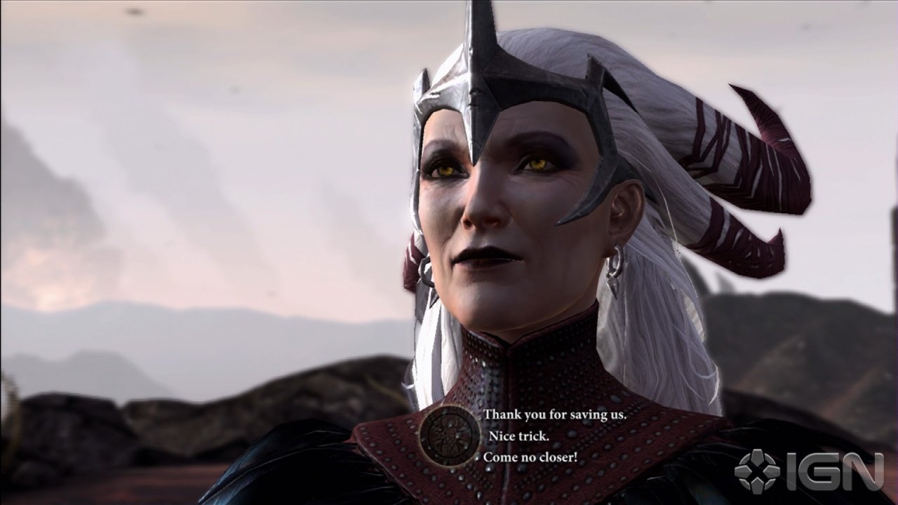 43 - Sounds like she might join us... woah, she just called herself Flemeth, aka Morrigan’s mom in Dragon Age: Origins who I totally killed with my Grey Warden. Of course, at this point in the timeline she was alive...