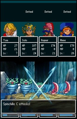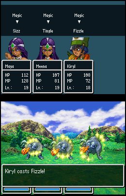 18 - The slime goes immediately afterwards. What happens when I attack a slime with a sword? Does he have blood or is he just full of slime? Does he have organs? What are his eyes attached to? Hopefully these questions are answered in Dragon Quest IX. Anyways, I level up. I see a cave in the distance, but another scissor beetle and wiggle tries to impede my progress. They fail miserably.
