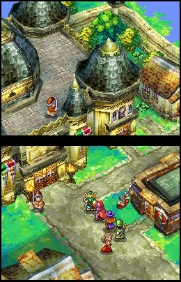 03 - The frog says he was cursed by a witch and then hops away. Sounds like a personal problem to me. I walk around the town and talk to a farmer, who says typical farmer things. The L and R buttons can rotate the camera, making the entire map spin. It’s very useful for seeing behind buildings. The field appears on both the top and the bottom screen, so my character’s scope of vision is quite large. I find the guy who was beating me and it turns out we were just training. And here I thought we were reenacting the Celes torture scene from Final Fantasy VI. He’s standing in front of a well, so I decide to climb down it. I hope it’s not like that well from Ocarina of Time.