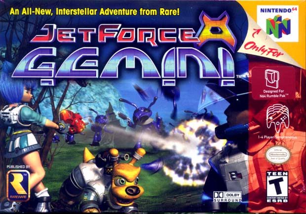is a Nintendo 64 third-person shooter game released by Rare in 1999. Looking back, it seems like such an odd game: twins Juno and Vela fly around in a space ship and save furry creatures from the evil empire. But when I think about it more closely, Jet Force Gemini really seems like the ultimate Rare amalgamation of their other Nintendo 64 games -