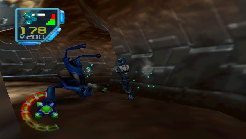 Besides the polygonal graphics, many Nintendo 64 games suffered from crappy gameplay. My theory behind this is that the controller simply wasn't ready for both 3D movement and dynamic camera control. Throw in some simultaneous aiming and moving/strafing with only one joystick and all of a sudden you have a 10 button controller that is simply inadequate for the games developers want to make. Jet Force Gemini suffers from this and thus the player suffers too. Is it good gameplay when an experienced gamer has to constantly think about what buttons to press? No. Does it make sense that the game forces you to use an inaccurate joystick (or is it just a bad aiming system?) to pick off sniper ants that just span a few pixels? No. I could go on but the first hour of Jet Force Gemini's gameplay is simply a disappointment.