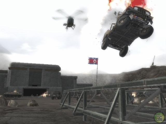 on the Xbox and PlayStation 2. It's kind of an odd pairing, as Mercenaries is about as far from a point-and-click adventure game as one can get, but it's one of those games I've been wishing to play for a while now. Mercenaries is a third-person shooter about mercenaries, of course. There's a war going on in North Korea, and what better way to cash in on a lot of money than to drop in and play all the sides?