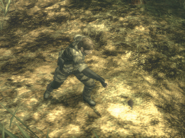 When a game hits 30 minutes and you haven't done anything yet, you start to question whether you're actually playing a video game. Unfortunately, when things actually do get rolling in Metal Gear Solid 3, you begin to realize that every button does something very specific and you have no idea what. Does this one crouch, aim, select weapon, select item, go to first person mode, or is it the mysterious "action button"? The camera is easy to control though, thanks to the enhanced Subsistence, but Snake definitely isn't as easy to maneuver. When things started getting hairy, I often lost track of what direction I was facing and where any of the enemies were. Things got disorienting quickly. There is a map you can reference, but an onscreen mini-map would have been nice.