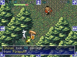 04 - Woah, immediately after reading the dialogue I get attacked by a monster! I take him down with some timely presses of the A button. Is Shiren using a sword or what?