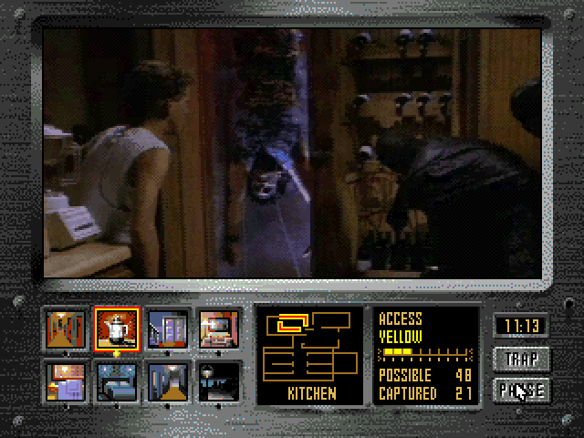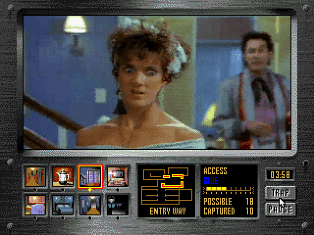 The core gameplay of Night Trap is really just you switching from camera to camera as fast as possible to find bad guys running around the house and then trap them. Trapping them doesn't take much skill, just press the button at the right time, but it's more about looking at the right camera at the right time. It's a little frustrating to suddenly find the security code has been changed, but I suppose this game has quite a bit of trial and error behind it, and I quickly figured out the correct time of the first code change. Night Trap's gameplay works off a simple concept, but it is executed pretty well.