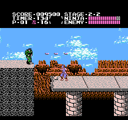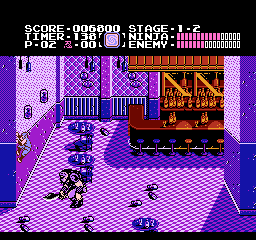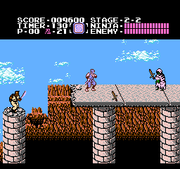 After the impressive opening cutscene, Ninja Gaiden on the NES quickly reminded me I was playing an 8-bit game. The graphics were sharp but the colors just seemed washed out. It looked great at the time but I can't hold it up against its peers infinitely. I believe the most impressive thing about the game's graphics were the backgrounds. They were well detailed and propped the game up a bit graphically. Ninja Gaiden's sound was pretty basic and there wasn't much outside the music.