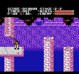 13 - Ugh, the platforming is getting tougher now with small little areas to land on and anti-ninja bats flying all over. I fall in a pit. The level restarts.