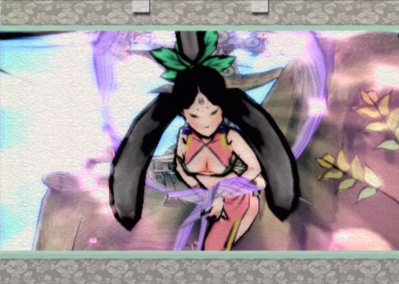 The game is beautiful. I've probably said that a few times in my reviews already, but seriously, this game looks great! The art style is so wonderfully charming and very true to the original art it is modeled after. And I can say this after only playing an hour (half hour of real gameplay) and seeing very limited environments. The music fits the mood, soft flutes and some drums to accompany the story, I didn't really notice anything noteworthy while actually playing. The sound effects work for the game, nothing special, though the "voices" are kind of annoying. But Okami's graphics are just perfect and goes to show you don't need next-gen to have a beautiful game. There are some clipping problems and the lack of even a widescreen option is somewhat disappointing.