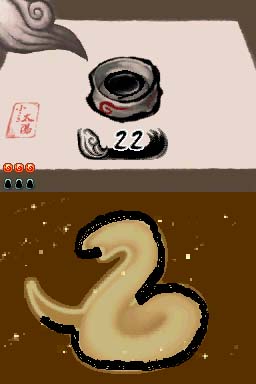10 - The fighting seems pretty reminiscent of Okami, so I had no problem taking out two low-life demons. I got some yen and a rice ball for my trouble. The game also displays the enemy’s health on the bottom screen.