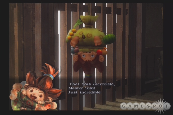 32 - Next up I speak with Minokuchi for a bit. Seems like his life goal is to become a samurai... too bad he's two feet tall and hangs from the ceiling in a potato sack.