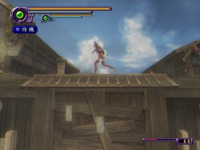 Onimusha's appeal lies in a great setting, interesting good and bad guys, and its action-oriented gameplay. Dawn of Dreams fails at nearly all of these completely in its first hour. After the opening scene we find ourselves in a deserted town with no explanation on why Soki is staying here. The only semi-interesting character is Mitsunari but he's relegated to the back seat while crazy stupid Minokuchi and his rope from nowhere tries to steal the show. And finally the action feels really confined and sometimes quite awkward. Targeting is a must, something that really wasn't necessary in the early Onimushas, and I even felt kind of weak compared to the skeleton peasants. Why aren't I taking them down in one or two swings? Also the fact that I have a second character tailing me but all I can do is tell her to fight or just stand there is a great opportunity lost.