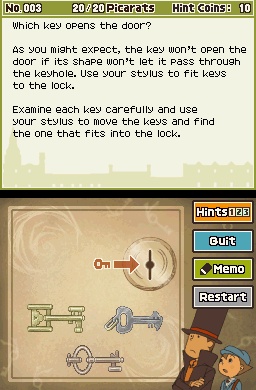 . Nintendo is serving as the publisher in North America, Europe, and Australia, and has done a magnificent job releasing a potentially very niche puzzler to a wider audience. Honestly, the series is filled with such ultra-politeness and quirky British voice talent it's a wonder that something like this has taken off. Professor Layton is simply a perfect storm of great puzzles and marvelous atmosphere.