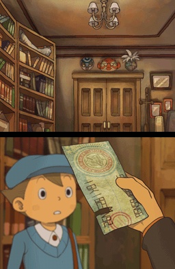 07 - I'm investigating the Professor's office now looking for his car keys. I play the role of Luke, Layton's apprentice. You tap around the room like a 2D adventure game looking for stuff. I find the key and get a quick lesson on traveling, just click the shoe icon and a side of the screen to move that direction.