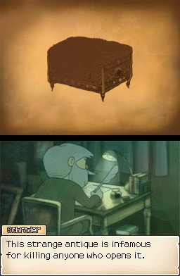 04 - Professor Layton's first name is Hershel? Haha. The letter is about the Elysian Box and how it will kill anyone who opens it. Sounds like The Ring and the videotape. The whole letter is being narrated by the good Doctor Schrader, who currently has the box in his possession!