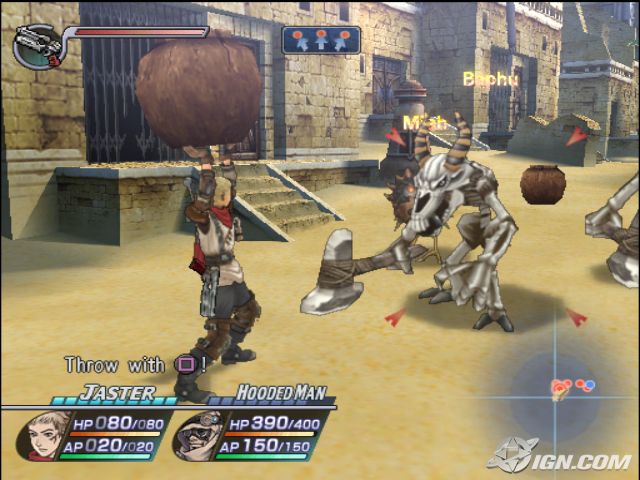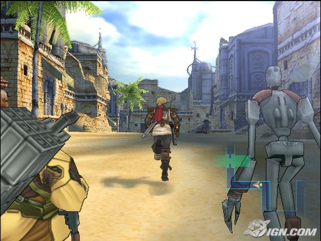 07 - Real-time action instead of typical JRPG turn-based combat. I like it. X is sword slash, square shoots the gun, and O jumps. R1 guards and I can use items from the menu.