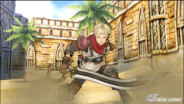 03 - Our character marches through the town gates, he's greeted by some soldiers. Now these are the game's graphics, still looks pretty nice though I will admit. Cel-shading ages quite well.