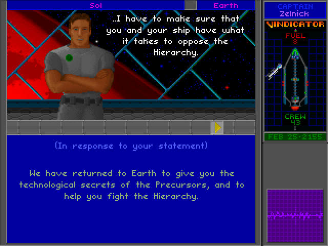 24 - A ship is incoming! Looks like the Ur-Quan are still around, and still ugly. He almost looks like Fu-Manchu.