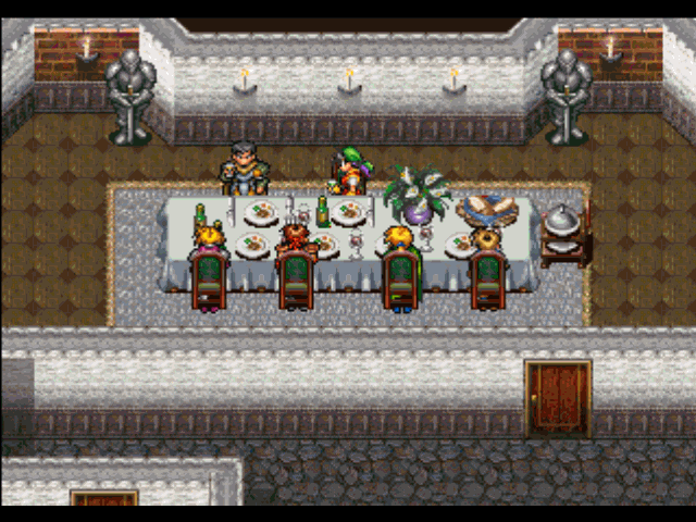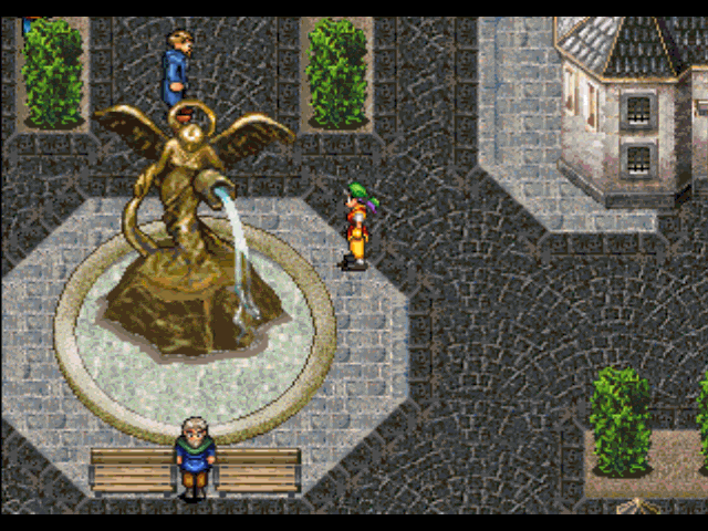 Video: I didn't expect a PlayStation-era RPG to look stunning, but Suikoden probably wouldn't even turn any heads on the SNES. There are some decent visual treats, like the reflections on the palace floor and flocks of birds hanging around the fountain, but the sprites are fairly basic and without detail. It's not ugly by traditional JRPG standards, but it's not exactly a looker, either.