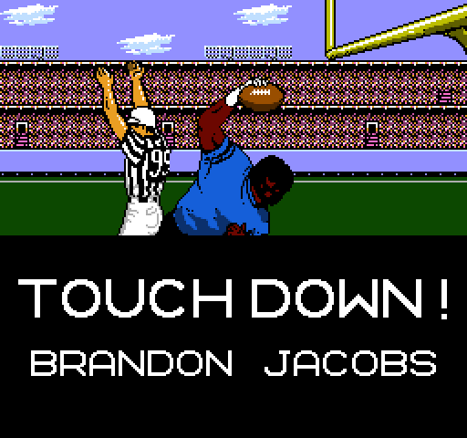 out of hand at times). The Patriots' quarterback was downright horrendous and constantly overthrew the ball or missed his target widely. This may be an over the top caricature of their QB at the time, but when you have an arcade-like setting and the seconds ticking by super fast, some things just have to be worked into the game. The Giants' running game on the other hand was stellar and was able to break blocks and tackles with ease.