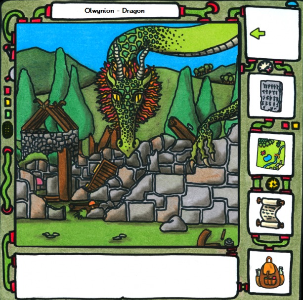 53 – Another location unlocked on my map, and so off I go to Olwynion. It’s a wreck. The marketplace is completed destroyed, and there’s a dragon there, but I can’t speak with it just yet. Not much else here.