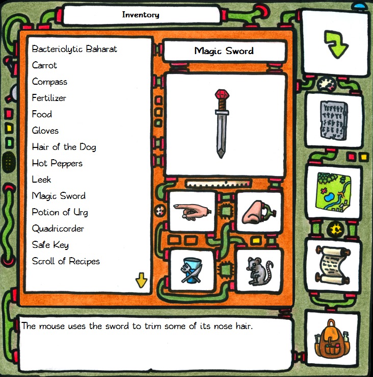 31 – Starting to feel stuck. Literally. I am literally stuck in Underhome. I have a scroll full of quests and an inventory with a bunch of random items, but I have visited all the rooms (I think) and can’t seem to figure out what to do next.