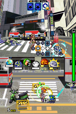 37 - Next battle gives me the flame pin and some kind of hand... I have no idea what to do with that though, but after the battle the game clues me in: it's for flinging objects at enemies. Like cars and signs. Just flick the object at the baddie. Why don't they tell me this before the battle? Whatever.