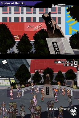 But like I said, the graphics are nice and detailed. The character sprites look great though I can't say I'm a fan of the art that much. Like so many anime characters, Neku and Shiki are abnormally skinny and their skin clings to their hips in super creepy fashion. Maybe that's what people look like nowadays in Shibuya as I haven't been there in a few years.