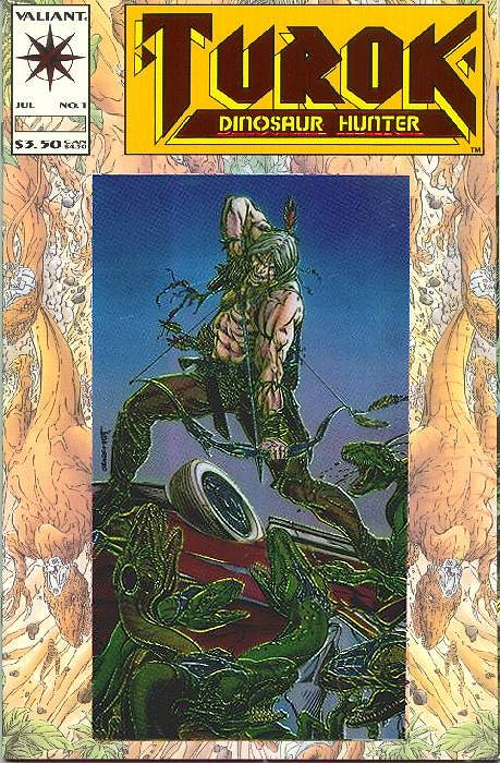 Yes, that's Turok standing on a car shooting velociraptors with a bow and arrow.