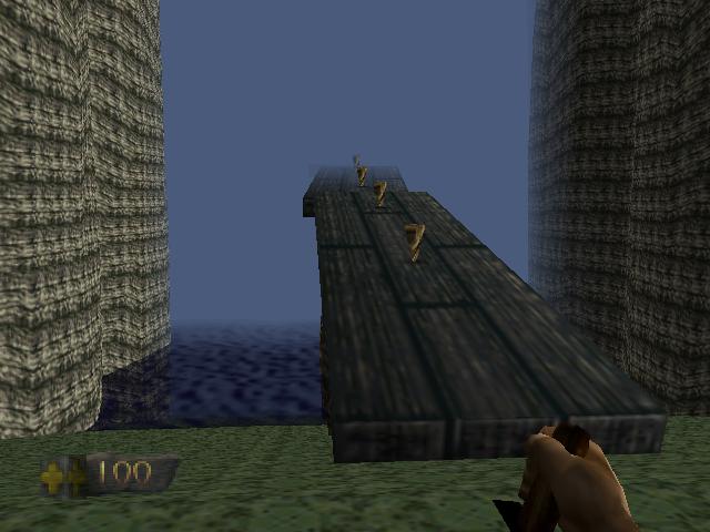 32 - Oh my... a jumping puzzle with lava. I hate myself. I fall in but luckily Turok just loses a few health instead of dying like most crappy video game heroes would. Sometimes the platforms you need to jump on disappear from the overlay map mid-jump, making it really difficult to land them. Seriously, this game is out to get me.