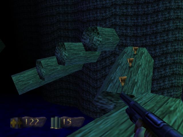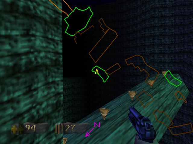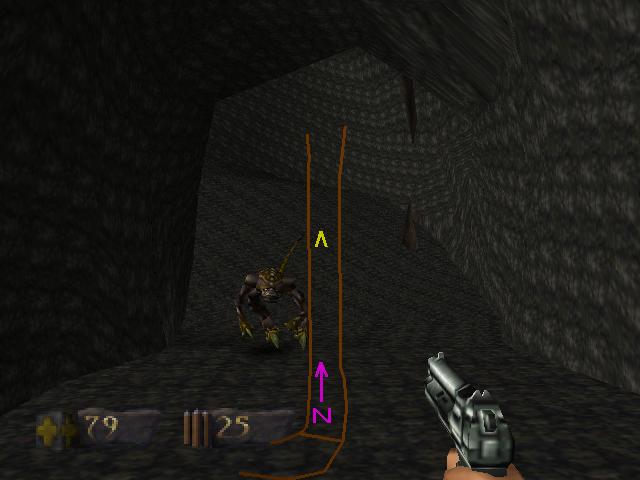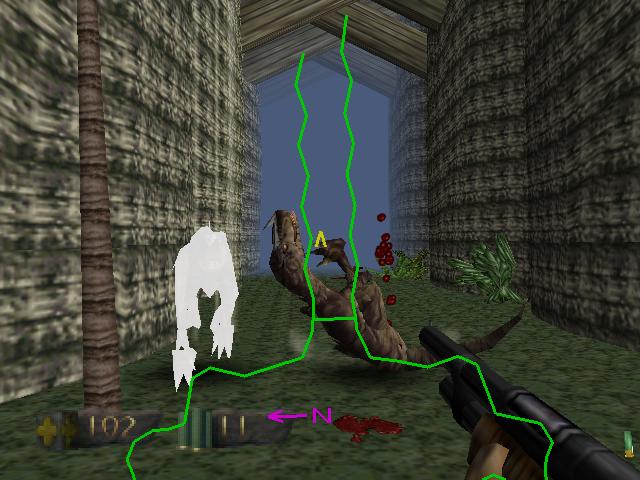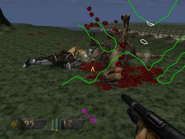 17 - You know, if you turn on the overlay map, you get an aiming reticule represented by where Turok's body is located on the map. Unintentional I think, but helpful none the less. Wow, a checkpoint! They had those back then?