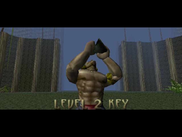 05 - I find the level 2 key and Turok proceeds to eat it or something. Odd animation. Oh man, five more keys to find in this level.