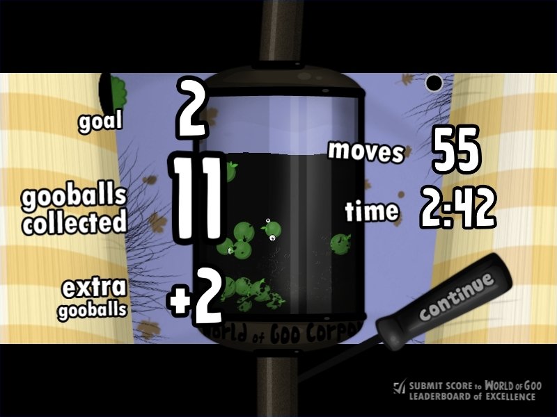 11 - I beat it, but I didn't save enough goos... only collected 22 of 26. Too many were destroyed by the saw. Even when you're carrying them with your mouse you have to be careful, tougher than I imagined.