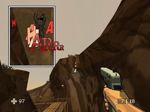 in and I shot a goon off a clifftop, and he fell to the pier below,