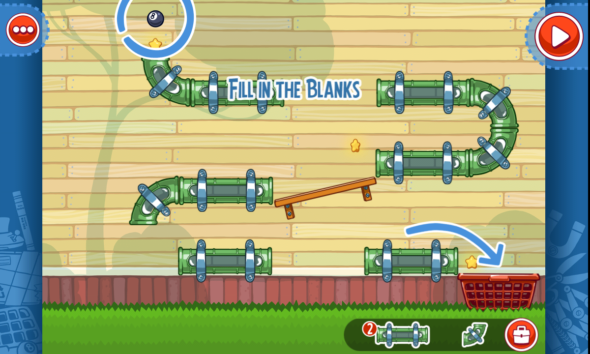 Soon enough the training wheels come off and you'll have to think for yourself. The stage-specific toolboxes and curving challenge leave little room for improvisiation in the post-tutorial stretch, where the path to the objective is fairly obvious, and even the extra-credit stars aren't difficult to figure out.