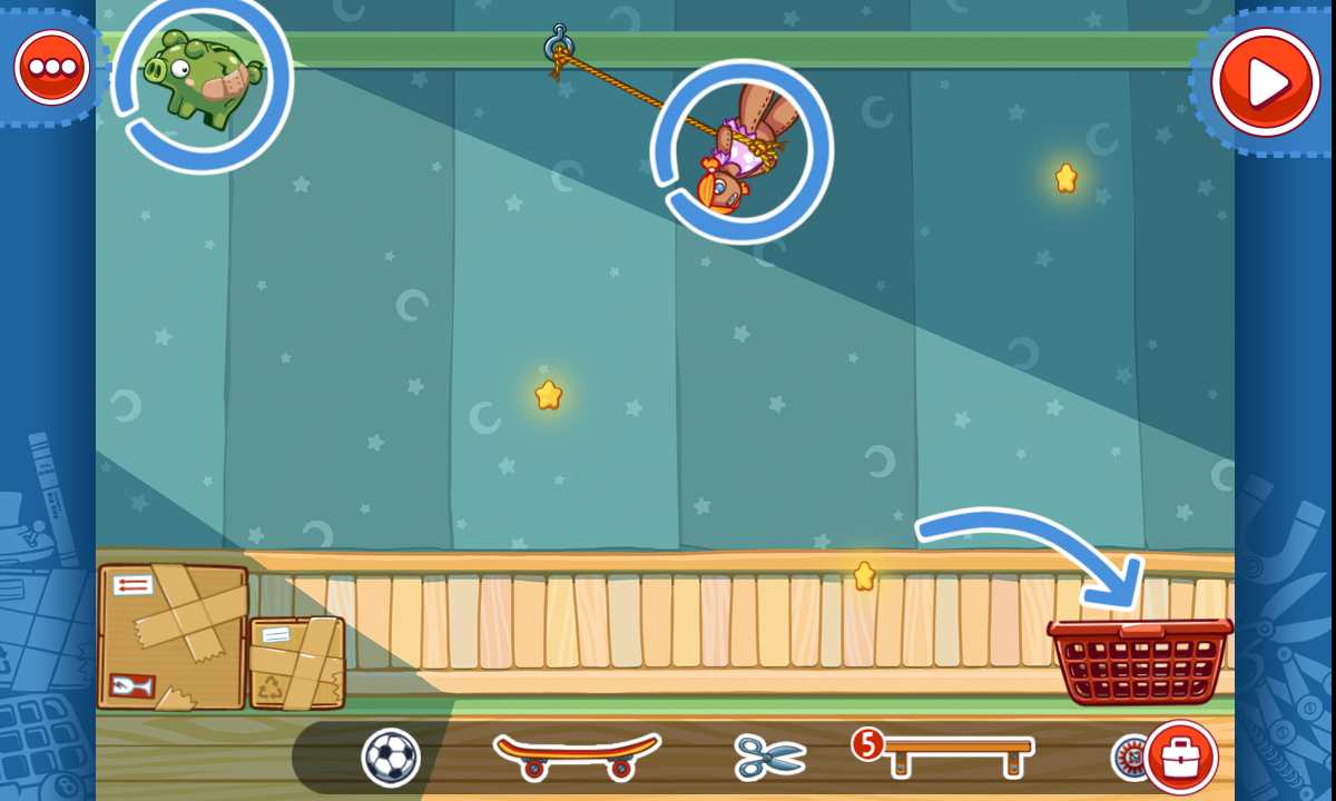 What is the objective there? Do I have to make that center green book fall onto the box? What about the other green books? They're circled but have no arrows. In a game where each stage has a different goal, it would be nice to have some explanation available, even if tucked away in a menu.